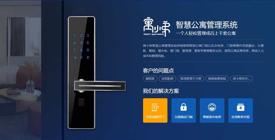 你們公司的那個公寓管理系統好強大啊,安裝了智能鎖后,我現在用微信就能觀察幾十個房間入駐情況,還能催租,又不用上門跑,真爽!